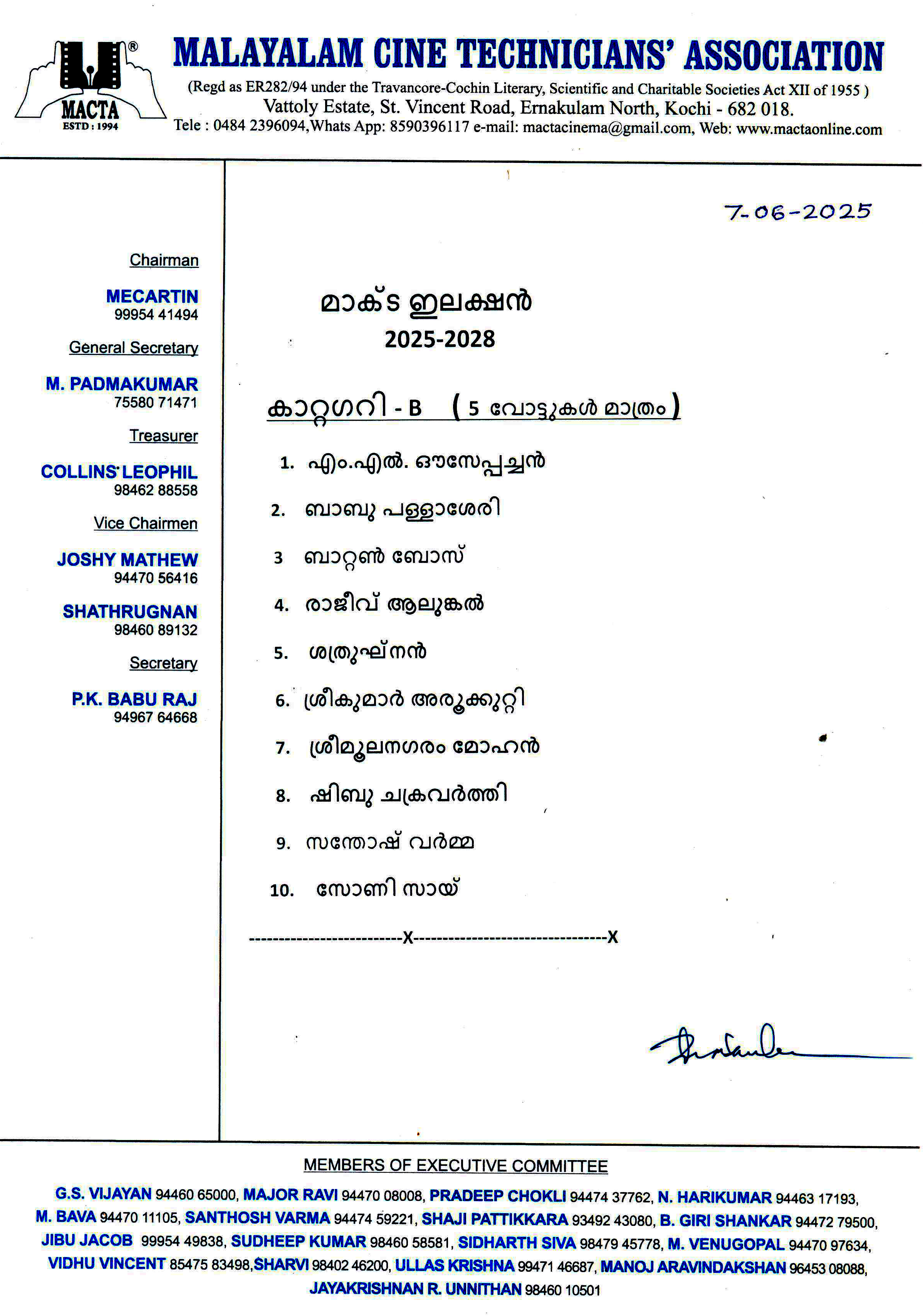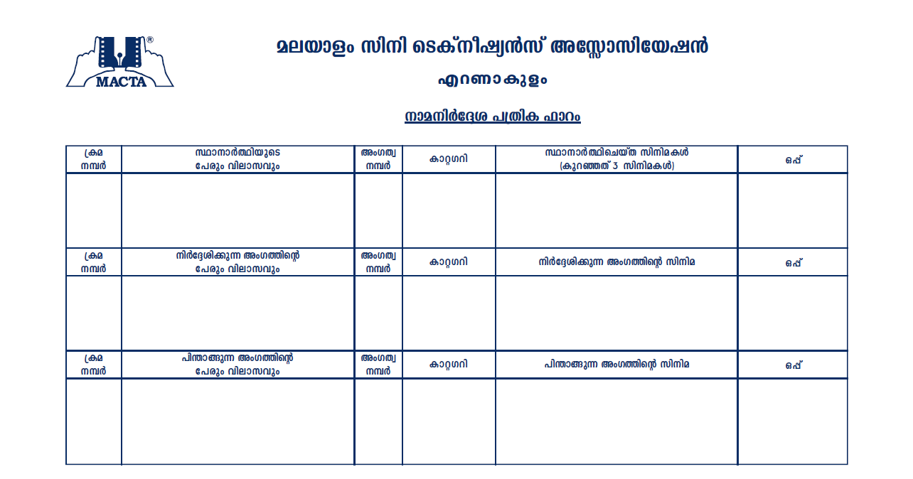 മാക്ടയുടെ വെബ്സൈറ്റിൽ കരട് വോട്ടർ പട്ടിക കൊടുത്തിട്ടുണ്ട്. അത് പരിശോധിച്ച് എന്തെങ്കിലും പരാതി ഉണ്ടെങ്കിൽഈ മാസം 24 ന് മുൻപായി അറിയിക്കുവാൻ താല്പര്യപ്പെടുന്നു.അന്തിമ വോട്ടർ പട്ടിക 27ന് പ്രസിദ്ധീകരിക്കുന്നതാണ്
